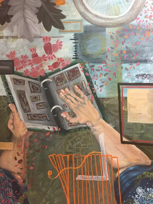 Gouache on wall paneling and found object, 70”x48”x16”, 2023.